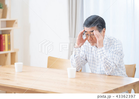 シニア男性 頭痛, 頭が痛い, 偏頭痛, 頭の痛み, ズキズキ痛い, 二日酔い,