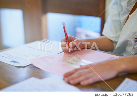 Keeping her patients details up to date. Cropped shot of a doctor filling out paperwork in a hospital.