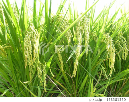 水田の実が出始めた稲穂(夏、八月)