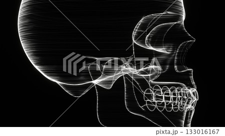 骨格標本の頭部アップ 顔面正面の3Dイラスト
