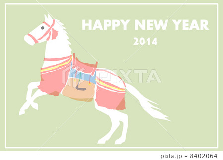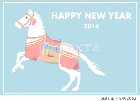 午年 年賀素材 水引とかわいい白午の親子 金色バック