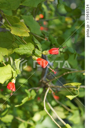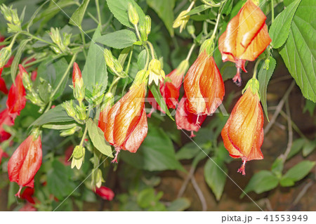 下向きの緋赤色の花熱帯アメリカ原産のウナズキヒメフヨウ