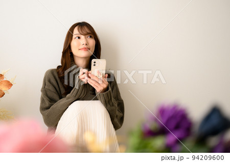 スマホをする女性 秋/冬 考える