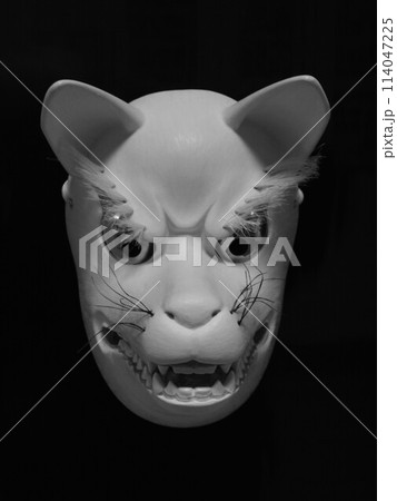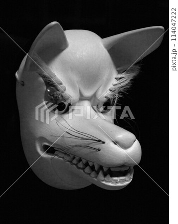 稲荷の神の使い神通力を与えるお狐のきつね面 モノクロ3