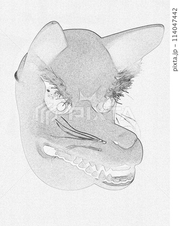 稲荷の神の使い神通力を与えるお狐のきつね面 モノクロ2