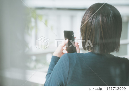 スマホを操作中オフィスで電話に出るビジネスマン手元