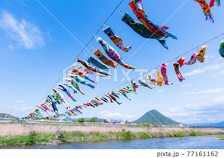 土器川を気持ちよく泳ぐ鯉のぼり