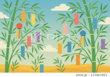 色とりどりの短冊が揺れる夏の七夕飾り
