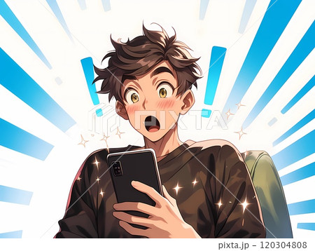 スマホ画面を見て驚嘆している若い男性