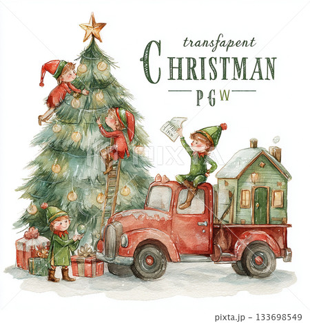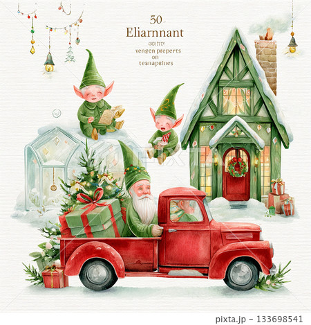Charming Christmas Illustrations Featuring Elves Santa Animals Trucks and Festive Decor