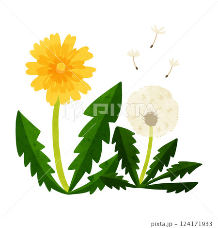 たんぽぽと綿毛 水彩風手描きイラスト