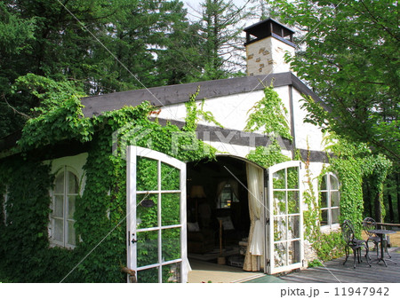青空とヨーロッパ風の建物 河口湖 音楽と森の美術館