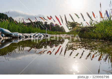 千葉県香取市 橘ふれあい公園 水面に映る鯉のぼり