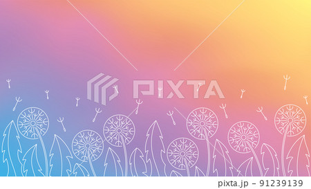 Blurry watercolor wallpaper with dandelion blowing flowers on rainbow background