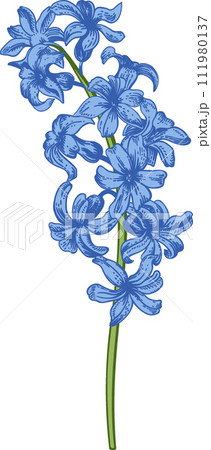 Hyacinth. Blue flower. Spring and summer flowers. Garden plants. Hand drawn illustration. Blue.