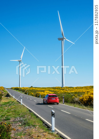 Green Power Generation: Wind Farm Landscape on a sunny day.