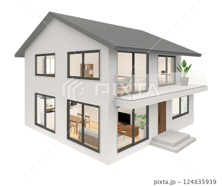 二階建て住宅の鳥瞰図 ソーラーパネル