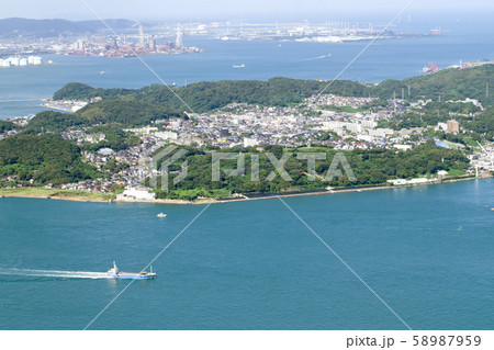 風頭から眺めた関門海峡の彦島の景色