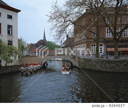風景 海外 ヨーロッパ 西ヨーロッパ 欧州 ベネルクス ベルギー ベルギー王国 フランドル地方 ウェストフランデレン州 ブルージュ ブルッヘ ブリュッヘ ブリュージュ 世界遺産 街 街並み 建物 運河 水路 橋 ボート 空 屋外 横の画像素材(写真・イラスト) 1ページ目