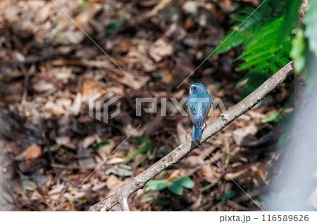 幸せの青い鳥、可愛いルリビタキ(ヒタキ科)。 日本国東京都文京区、小石川植物園にて。 2024年新