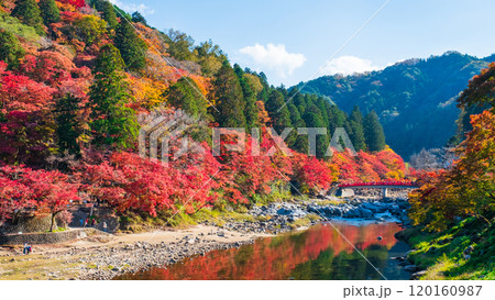 東京 紅葉に染まる武蔵御嶽神社 参道の赤鳥居