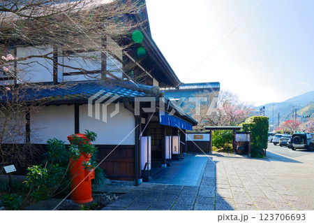小田原市 国道1号線沿いの鈴廣かまぼこ本店と満開枝垂桜