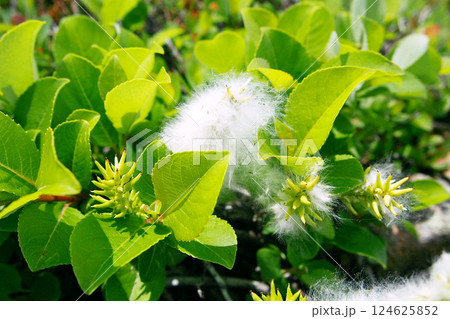 ふわふわに膨らんだミネヤナギの柳絮