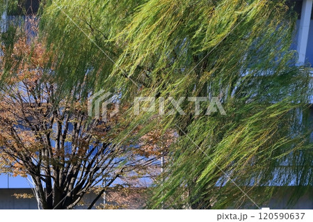 公園の柳の木
