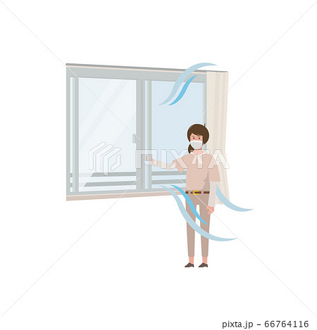 窓を開ける女性【換気・風通し・教室・通風・空気の入れ替え】イラスト