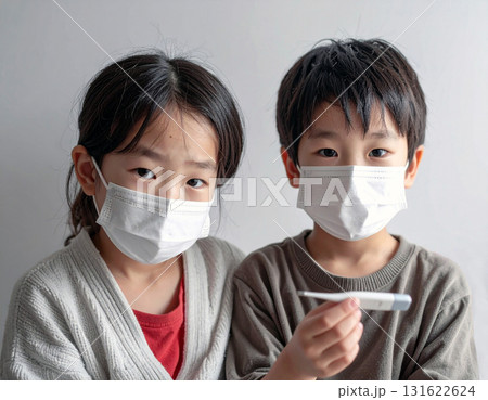 風邪イメージ(親子 体温計)