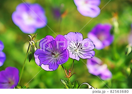 パステル調 ”紫のゲラニュームの花が咲いています” イラストイメージ