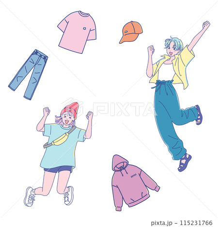 ファッション好きな女の子たちが、洋服と一緒にジャンプする