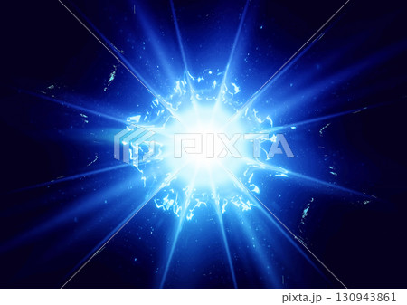爆発の効果のある抽象的な青い光の3dイラスト
