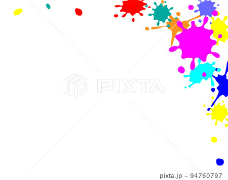 飛び散ったインクの形、カラフルなペンキの雫のフレーム