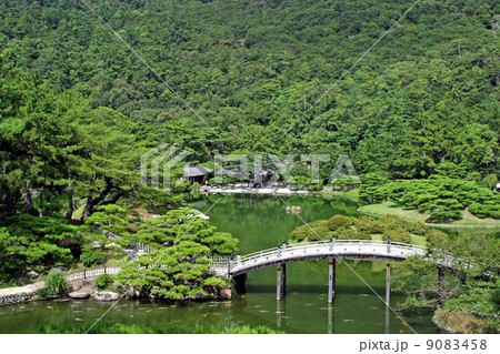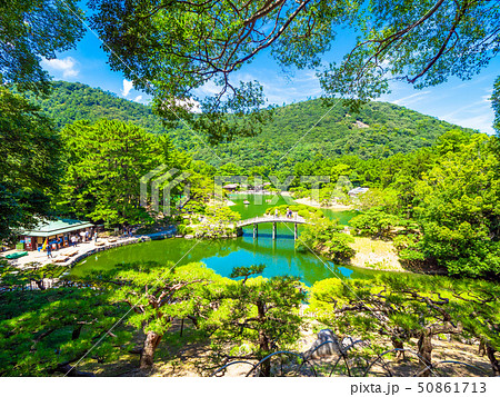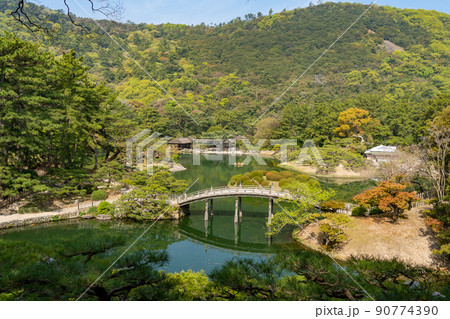 香川県高松市 栗林公園栗林公園を代表する景観の飛来峰と偃月橋
