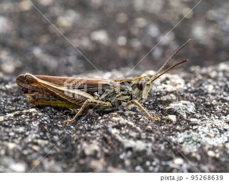 岩の上にいるヒナバッタのオス