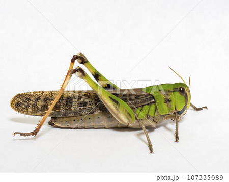 白い背景のトノサマバッタ