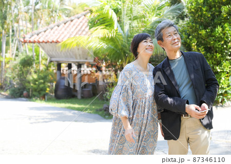 夫婦旅行-沖縄恩納村観光 スマホでチェックしながら観光
