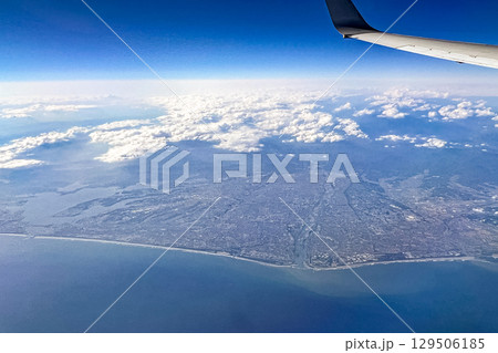 飛行機の窓の外から観る千葉県鴨川上空
