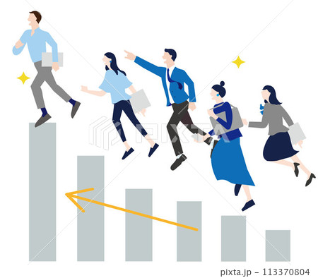 スタートアップのイメージイラストービジネスパーソンー矢印ー白バックイラスト素材
