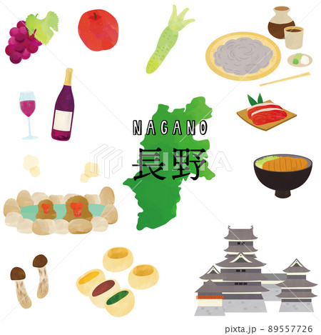 長野 ご当地グルメ・観光名所 水彩タッチイラスト