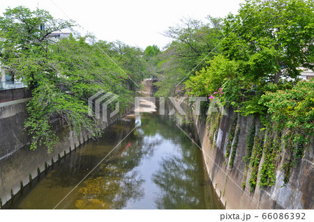 東京都北区滝野川にて 石神井川、観音橋より上流方面を見る