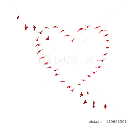 Heart of red birds. hand drawing. Not AI, Vector illustration
