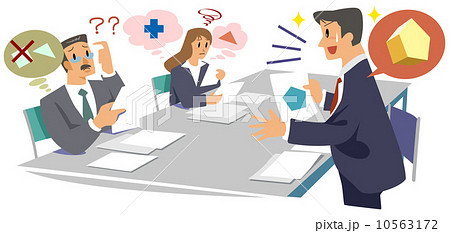 意見が食い違う打ち合わせ_お互いに自分の意見を通したいビジネスパーソン男女1