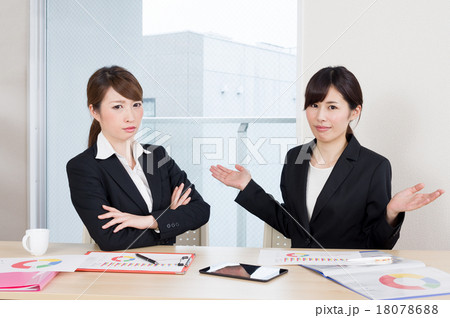 対立する意見 女性社員二人 会議 ビジネスシーン