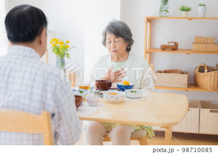 食事シーン 食欲がないシニア女性