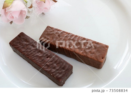 薔薇の花とお菓子バレンタインチョコ白い皿休憩カフェ高級ブランド