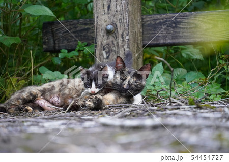 猫・野良猫・錆柄・さびちゃん・メス・子供・六月・可愛い・白黒・戯れ・オッパイ・親子