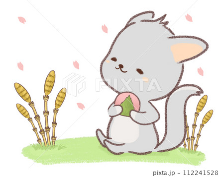 桜餅を持って楽しそうにするチンチラのイラスト
