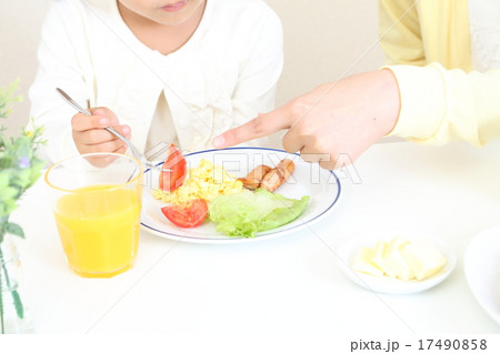 料理のマナーを注意する、叱るお母さんと怒られる子ども 食育や躾、テーブルマナーなどマナーのイメージ